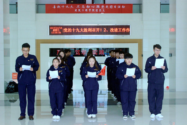 近期,建筑工程学院团总支为团结引领广大青年听党话、跟党走,激发广大同学的家国情怀,传递爱国正能量,激励同学们将满腔的爱国热情投入到工作学习中,开展了“喜迎十九大、共筑中国梦”系列活动,共同迎接党的十九大胜利召开。