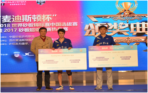 本次比赛由中国砂板联盟、快乐乒乓网主办,苏州麦迪斯顿医疗科技股份有限公司独家冠名,得到了赛事战略合作伙伴许绍发无缝球、鑫博克地胶的大力支持。