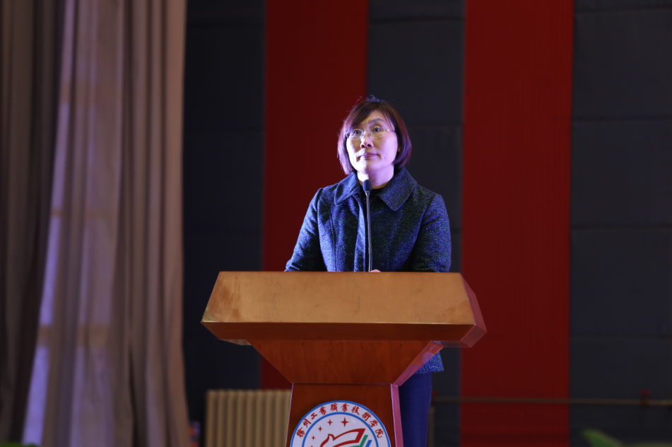 最后,李红副书记以“怀揣梦想,强化担当,锤炼本领,立志成才”为题作了“学习身边榜样,汇聚前行力量”主题教育活动动员讲话。她对过去一年我校学生工作取得的成绩表示肯定,对获奖的个人和先进集体表示祝贺。李书记在讲话中指出,在全校上下学习贯彻学习党的十九大精神和全国、全省高校思想政治工作会议精神,深入落实学校第二次党代会精神的时间节点,举办优秀学生颁奖典礼暨“学习身边榜样,汇聚前行力量”主题教育活动动员大会具有很强的教育针对性和导向性。她以7名受表彰学生的成长经历为例,为广大学子讲述了关于“逐梦”、关于“担当”和关于“逆袭”的精彩校园故事,号召全体学生向“身边榜样”们学习,“让勤奋学习成为青春飞扬的动力,让增长本领成为青春搏击的能量”,争做“有理想、有本领、有担当”的新时代青年。她寄语广大学子,要坚定理想信念,志存高远,脚踏实地,明确奋斗目标,勇于从小事做起,善于从眼前做起,努力做一名志存高远的徐工职院人,一名勇于探索的徐工职院人,一名笃学笃行的徐工职院人,为实现自己美好的青春梦而奋斗,为伟大的中国梦而奋斗,为中华民族伟大复兴的历史使命而奋斗。