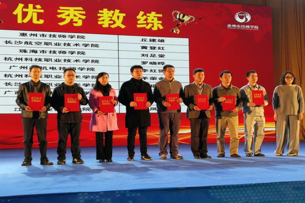 12月18日—23日,由国家人力资源和社会保障部、中华全国总工会、中国机械工业联合会联合主办的2017年中国技能大赛——首届全国智能制造应用技术技能大赛在广东省惠州市技师学院举行。我校机电工程学院徐敏老师指导徐工集团重型机械有限公司黄实现、袁雪雷和李顺获得大赛一等奖,3名选手被授予“全国技术能手”荣誉称号,我校机电工程学院徐敏老师被授予“优秀教练”荣誉称号。