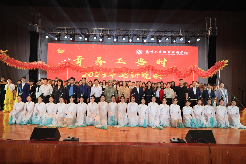 演出结束后出席晚会的领导亲切慰问了演员们并合影留念。本次晚会通过歌舞、京剧表演、朗诵、器乐表演、武术表演等形式充分展现了我校丰富多彩的校园文化生活和徐工职院师生“自强、务实、协力、争先”的学院精神,鼓励全体2023级新生们,凝心聚力共筑梦,踔厉奋发向未来,谱写属于自己的青春之歌!