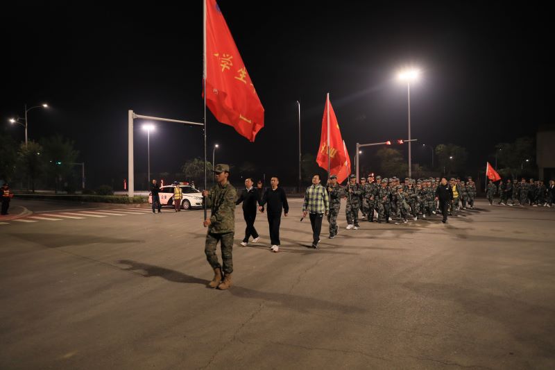 10月15日凌晨,我校2023级新生军训团开展主题为“行军古战场,奋进新征程”军训拉练进军营活动。校长鲍桂楠、副校长孙健身参加拉练活动,学校武装部、保卫处、各二级学院党总支书记、副书记、相关辅导员以及军训团全体教官全程参与拉练活动。