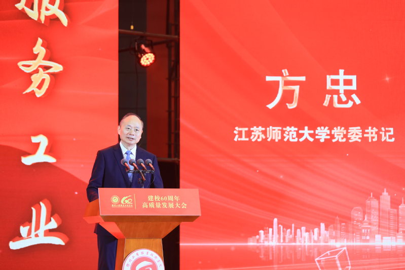 兄弟院校代表、江苏师范大学党委书记方忠发表致辞。他指出,自建校以来,徐州工业职业技术学院坚守“工业报国”初心使命,一代代工院人励精图治、奋楫争先,努力书写高质量发展的华彩篇章,学校事业取得了显著成绩,实现了办学专业全口径对接徐州市“343”产业集群,形成了契合市域、县域、行业龙头企业和中小微企业发展需求的“四轮驱动”产教融合模式,全面助力地方经济社会高质量发展。江苏师范大学与徐州工业职业技术学院同处彭城,在人才培养、科学研究、社会服务等方面携手奋进,共同为徐州和江苏教育事业的高质量发展贡献力量。