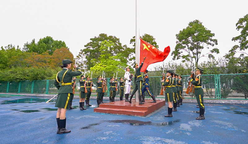 典礼在庄严的升旗仪式中拉开序幕。全体师生面向国旗,高唱国歌,铿锵旋律激荡着新生的爱国情怀与使命担当。