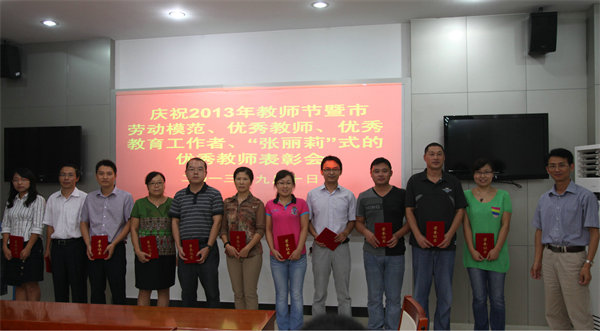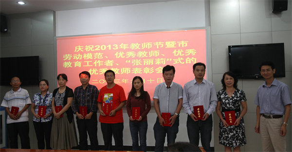 会上,金万祥副院长首先宣读了表彰决定,根据《市政府关于表彰2010-2012年度徐州市先进集体暨劳动模范的决定》(徐政发[2013]38号)、《中共徐州工业职业技术学院委员会关于表彰2012年度“优秀教师”“优秀教育工作者”的决定》(徐工职院党发[2013]39号)以及《关于公布我院“张丽莉”式优秀教师的通知》,对徐州市劳动模范冯贵福、王鸿磊等22名优秀教师、马光辉等15名优秀教育工作者、姚琪等4名“张丽莉”式的优秀教师进行表彰;调研员王健强以及金万祥、李红、魏勇等校领导分别为获奖者颁奖。机电学院教师朱涛代表受表彰人员发言。朱涛回顾了2009年从徐工集团调入我校四年来的从教经历,从“紧贴区域经济,找准专业定位;构建课程平台,对接能力培养;加强科研能力,创新教学环境;加强师德修养,身教重于言传”四个方面,总结并介绍了在我校专业建设和教育教学改革中,贯彻推行“双能并重、三元融入、四层递进、产学互动”人才培养模式的工作中积累的经验;朱涛表示在教学和生活中,要以从事高职教育为荣,将自身的利益与学校的利益紧密融合,同成长,共发展;也希望通过我校广大教师努力,创出我们“徐工院”品牌。