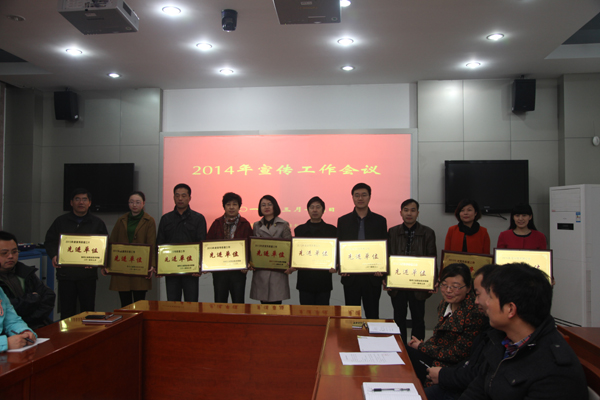 会上,李书记首先宣读了《关于表彰2013年度宣传工作先进集体和先进个人的决定》,对化学工程技术学院等10个宣传工作先进集体,陈群玉等10名优秀通讯员予以表彰,并为受表彰的先进集体和个人颁发了奖牌和证书。