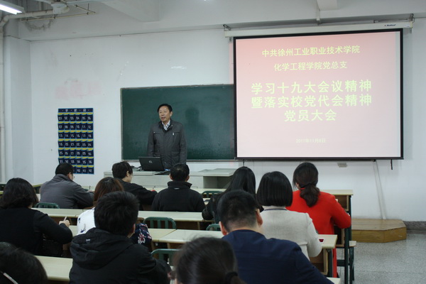11月8日下午,化工党总支召开全体党员大会,集中学习十九大修正后的《中国共产党章程》,促进学院第二次党代会工作目标的进一步落实,大会由党总支书记季剑波主持。