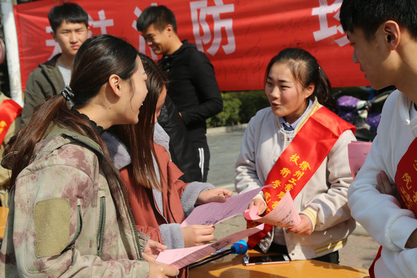 为了使消防安全宣传更具影响,引起广大师生的重视、唤起他们的共鸣,建筑工程学院特印制消防安全倡议书分发给往来师生,志愿者们给参与学生认真讲解,积极互动。消防安全与我们每个人都利益相关,志愿者们将消防安全倡议书发到学生手中,号召他们认真阅读,共同承担起维护消防安全的责任。