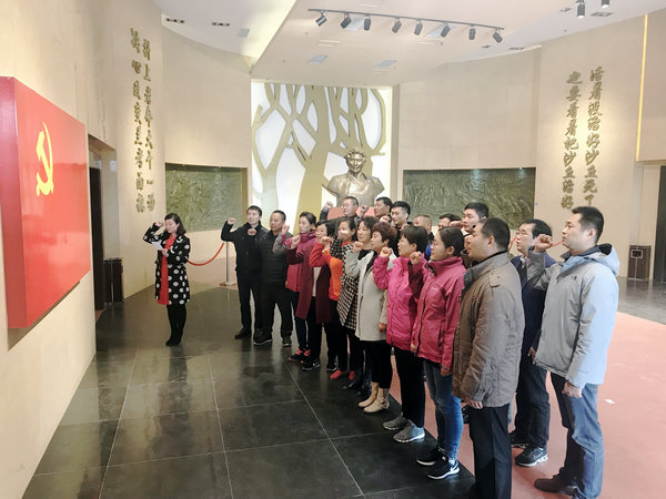 在焦裕禄烈士陵墓前,全体党员三鞠躬,深切缅怀这位把毕生精力献给党和人民的模范共产党员。表达了对焦裕禄同志的敬仰之情,并举行了党员重温入党誓词活动。