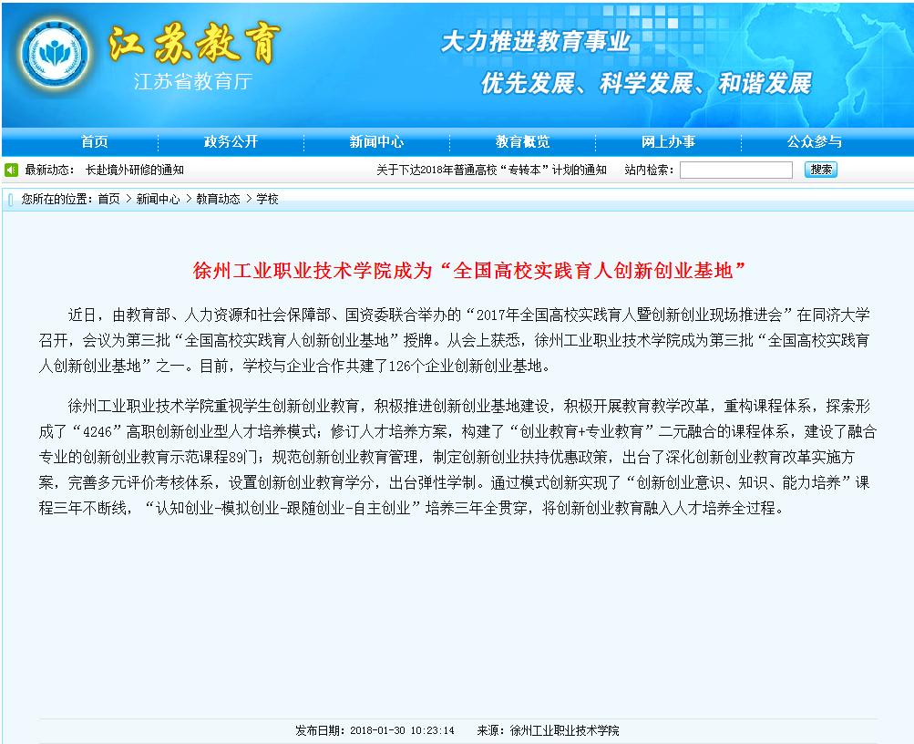 【江苏教育】徐州工业职业技术学院成为“全国高校实践育人创新创业基地”