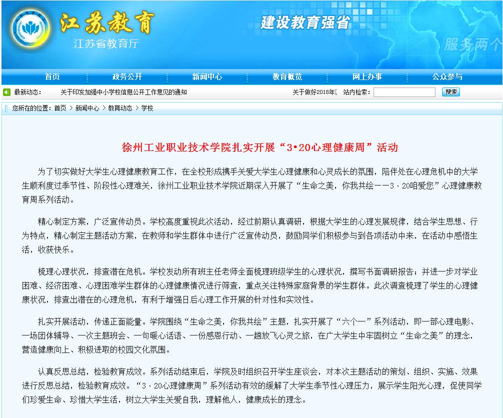 【江苏教育】徐州工业职业技术学院扎实开展“3•20心理健康周”活动