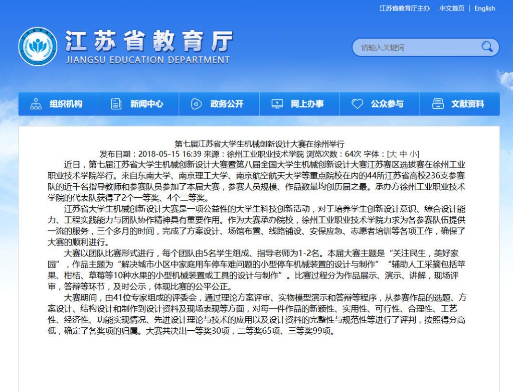 新闻链接:http://jyt.jiangsu.gov.cn/art/2018/5/15/art_57813_7638957.html;