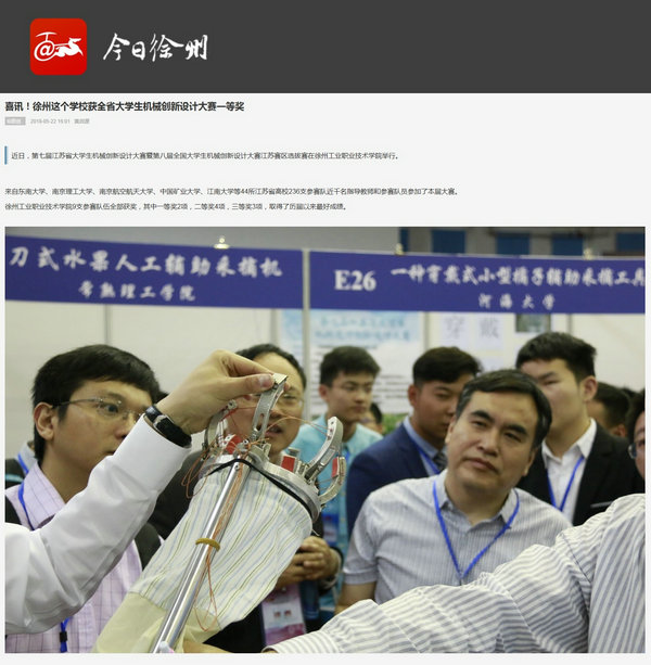 近日,第七届江苏省大学生机械创新设计大赛暨第八届全国大学生机械创新设计大赛江苏赛区选拔赛在徐州工业职业技术学院举行。