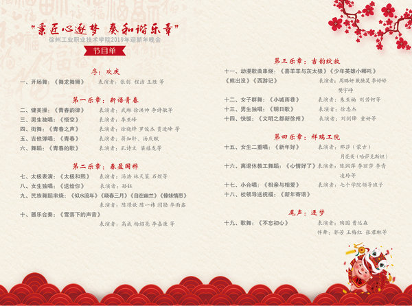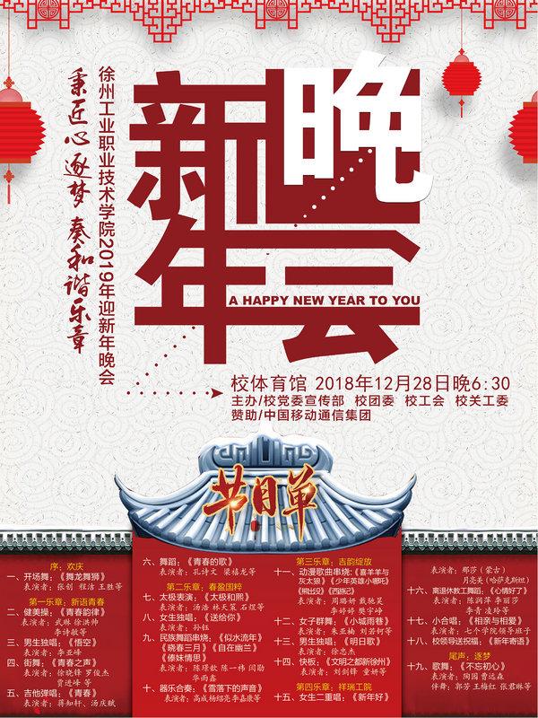 活动主题:“秉匠心逐梦 奏和谐乐章”徐州工业职业技术学院2019年迎新年晚会