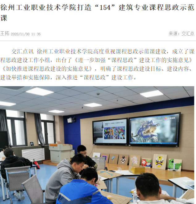 学校采取了课程思政建设项目试点、评选示范课、培育教学名师等具体建设举措,并在该校建筑工程学院专业课程思政建设中,探索构建了1+5课程思政示范组,融合4个教学环节的全过程课程思政建设路径,以开放的视野和创新的思路,打造了一批特色鲜明、充满思政元素的建筑专业课程思政示范课程,有效提升了建筑专业课程的思政教育性。