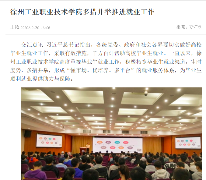 【交汇点】徐州工业职业技术学院多措并举推进就业工作