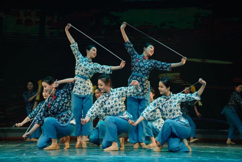 第二幕后方生产(20分钟)在后方,群众积极生产,妇女为解放军纳鞋底、做布鞋、做烙馍、做担架,一片积极向上的画面。新婚妻子,思念丈夫,不知道丈夫目前在哪里!