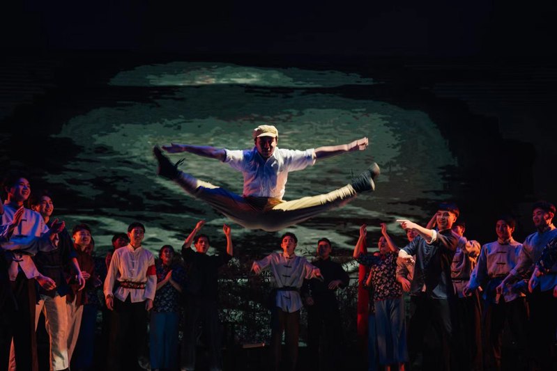 第四幕一世守望(20分钟)一辆小推车上,被子上的百合花显得极为刺目,一条腰带安静的躺在被子上,队长唐和恩推着小推车慢慢走来,新婚妻子看到百合花的被子和腰带后,丈夫嚎啕大哭。许久后,新婚妻子拿起腰带,慢慢的系到腰上,坚定的拉起小推车,再次踏上丈夫曾经支前的道路……