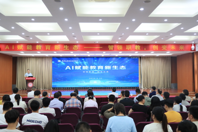 5月22日下午,我校在图书馆多功能厅成功举办“AI赋能职业教育教学”专题报告会。校长鲍桂楠、党委副书记李红、副校长张芳儒、副校长曾凡远,机关全体教职工、各二级学院领导班子、教研室主任、专业带头人和骨干教师参加了会议。