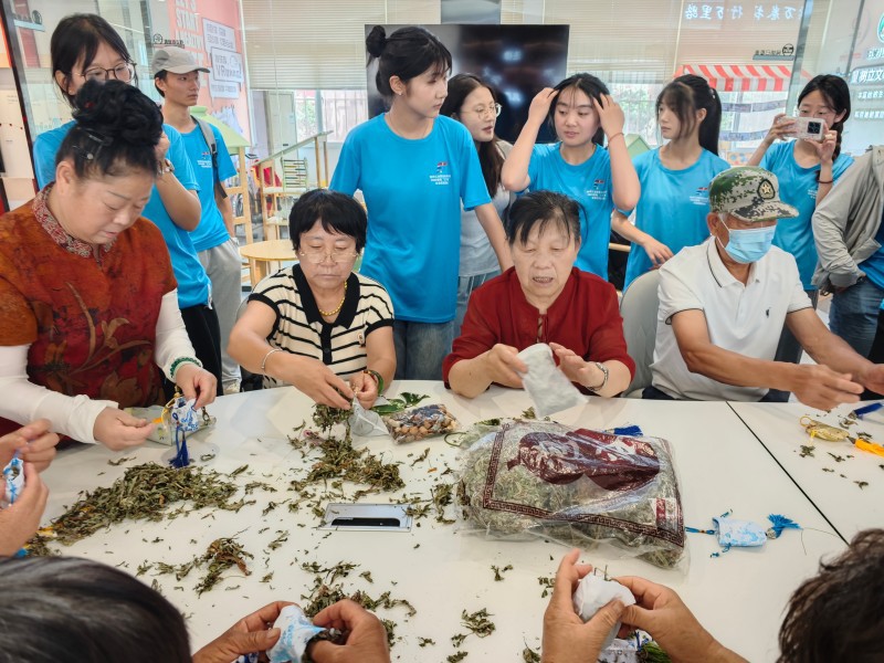 文化传承价值不仅在于精神滋养,也在于创造经济效益,惠及民生。实践团精准聚焦乡村留守群体等特殊人群就业增收需求,依托徐州丰厚的药材资源和国潮中医兴起契机,开发一系列低门槛、强文化属性手作项目,探索文化价值向经济价值的有效转化。在残联“残疾人之家”及社区活动室,村民们利用自产药材,参与制作飘散药香的驱蚊香囊、安神茶包,串制合香珠手串、填充香囊,为他们提供了家门口的就业机会和融入社会的平台。在农场与中医药种植基地,实践团组织孩子们辅助采集药材、制作精美标本框,既参与劳动,也接受教育。为打通产品销路,团队在校内中医药市集及线上平台设立体验摊位,吸引游客付费参与制作中药风铃、耳环、书签等时尚文创产品,亲手体验的乐趣成为产品的最佳推广。团队预期运营“岐黄工坊”抖音号,通过直播村民手作过程,讲述产品背后的文化故事,为传统手工艺注入现代灵魂和品牌附加值,带动村民增收,让指尖技艺开出致富花。