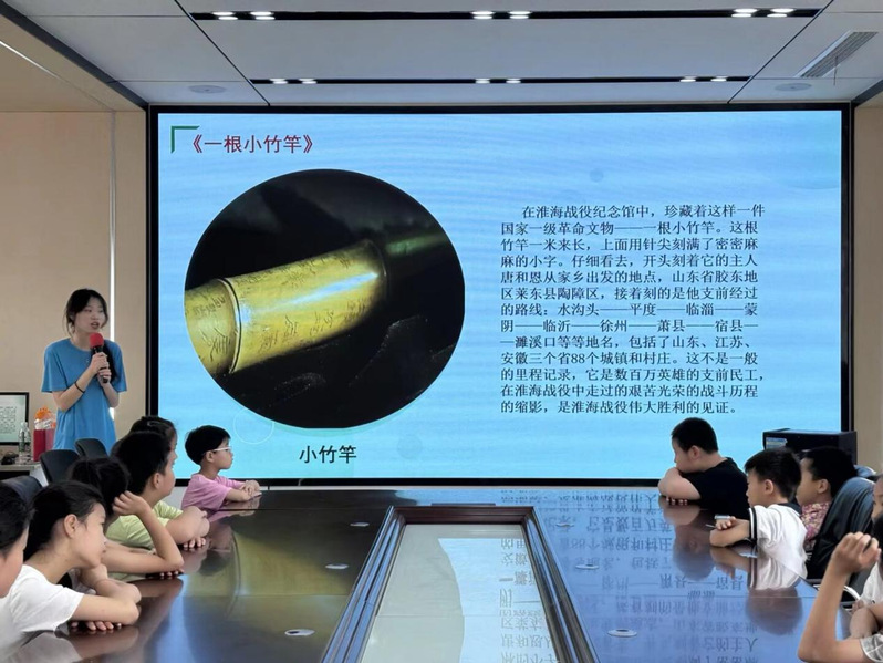 在红色教育课堂,志愿者组织社区儿童学习淮海战役“一根小竹竿”支前故事。在志愿者指导下,孩子们亲手制作蕴含坚韧品格的竹制工艺品,聆听生动党史故事,在指尖与耳畔的互动中感悟革命精神。活动巧妙融合传统竹编与红色教育,让儿童筑牢理想信念根基,爱党爱国的种子在幼小心灵悄然萌芽。