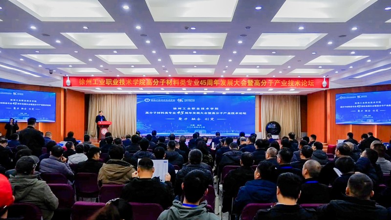 校长鲍桂楠在致辞中深情回溯专业45年砥砺征程。1980年,学校前身徐州化工学校创办橡胶制品工艺专业。四十五年薪火相传,该专业已从单一学科升级为国家“双高计划”专业群,坐拥2支国家级教学团队、2个国家级实训平台,牵头组建全国职业教育高分子材料职教集团,五获省科技进步奖,始终领跑全国高职同类专业。45年来,专业始终坚持为党育人、为国育才的初心,累计为行业输送1.2万名高技能人才,其中3600余人成长为行业高管与技术骨干,1100余名跻身企业家行列,助力江苏江昕科技等12家企业成长为国家级制造业单项冠军,用“橡胶精神”书写了产教共生的动人篇章。