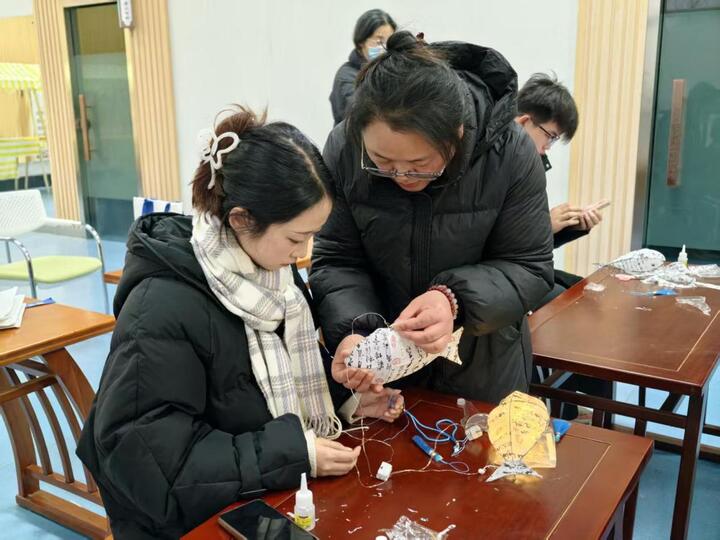 本次活动由学院精心策划,特邀地方非遗传承人李少华老师走进校园,系统讲解徐州地区荷花灯的历史渊源、民俗寓意与制作工艺。学生们从认识材料开始,学习扎制骨架、精心裁纸、染色、裱糊,最后组装成型。每一个步骤都需耐心与细心,传统工艺的严谨与智慧在具体操作中得以真切感知。“看起来简单,自己动手才发现每一步都有讲究。”环境工程专业的学生张小乙分享道,“扎骨架要匀称稳固,糊花瓣要平整服帖,这和我们专业课要求的精度与匠心是相通的。”课堂超越了单纯的技能模仿,成为连接传统智慧与现代工匠精神的桥梁。